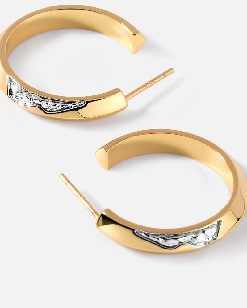 Eroded Hoop Earrings in Two-tone, Medium*18k Gold and Rhodium Plated
