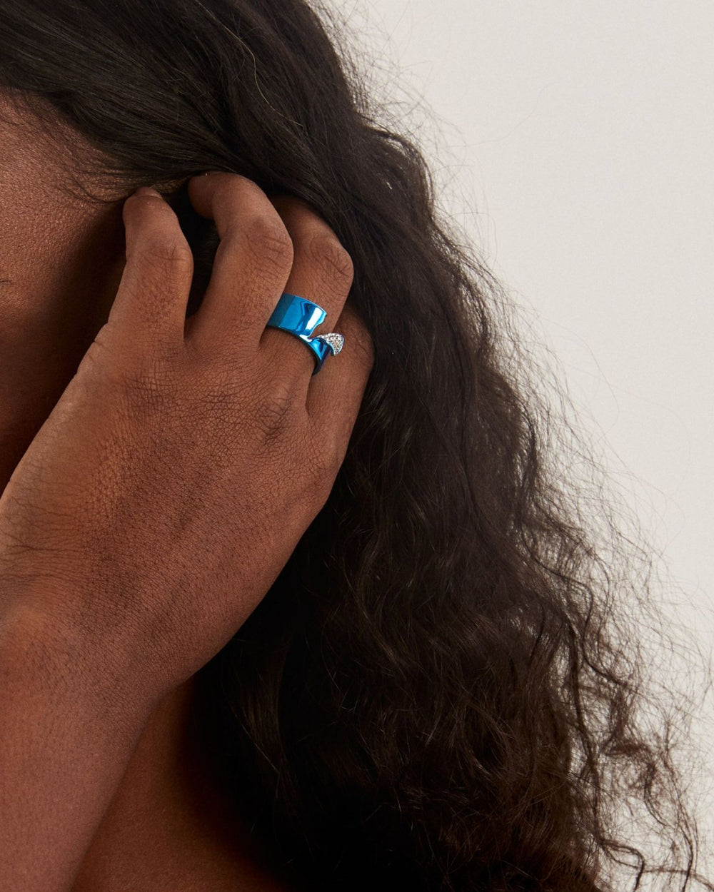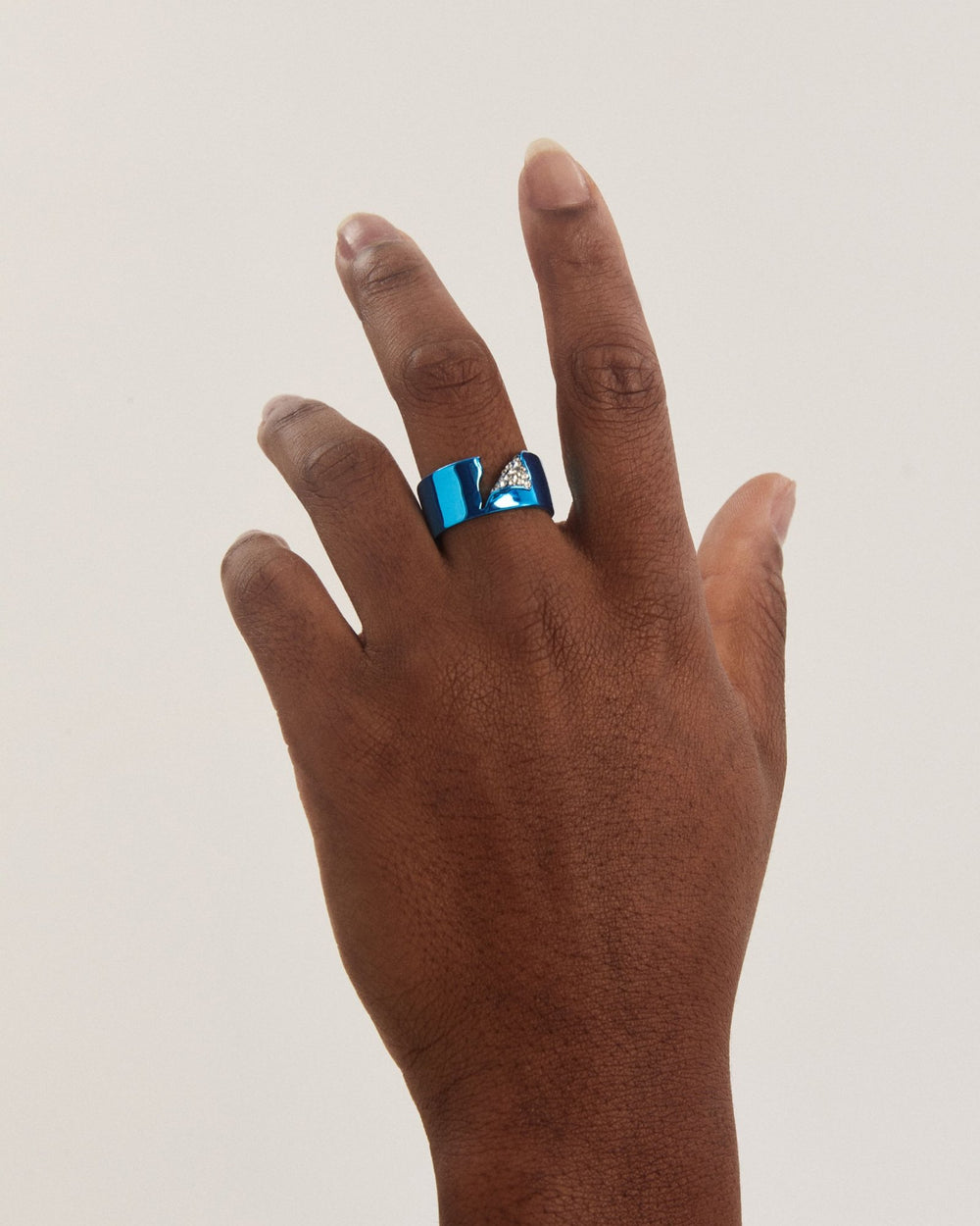 Torn Wide Band Ring in Cobalt Blue*Cobalt Blue Plated on Silver, Crystal