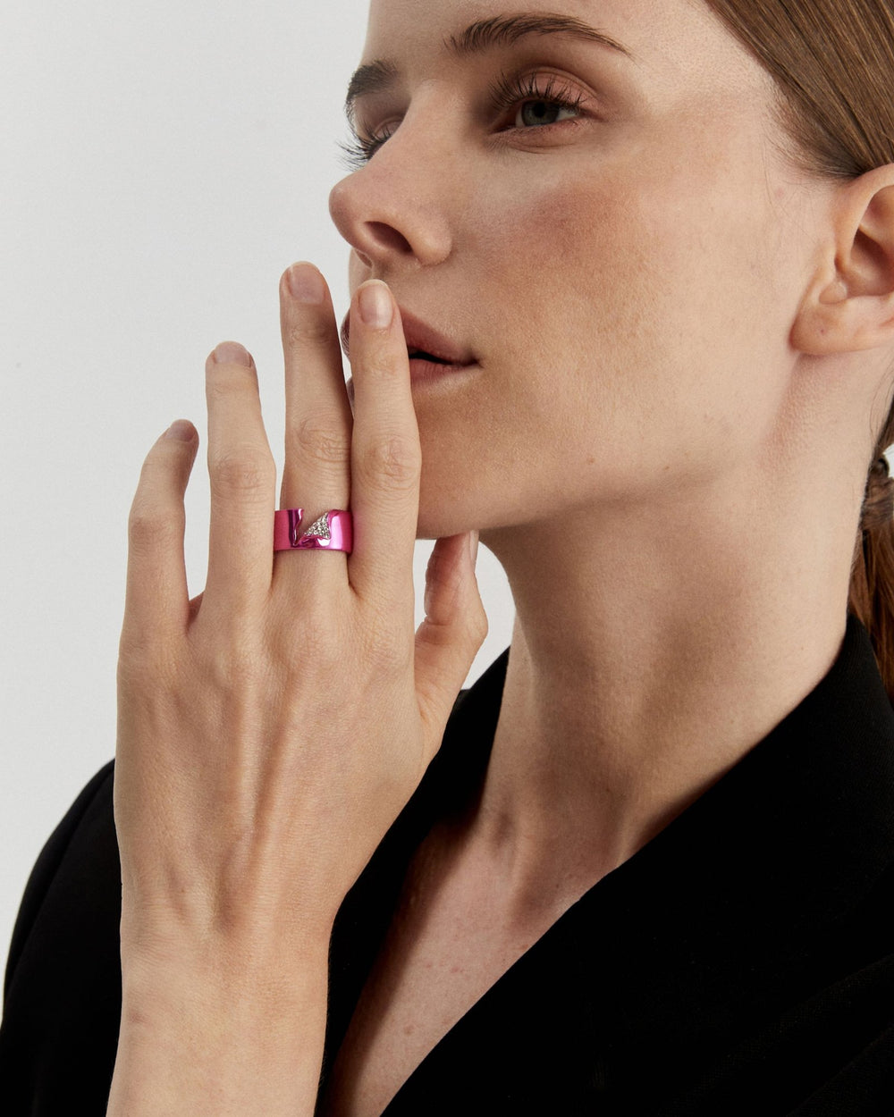 Torn Wide Band Ring in Fuchsia Pink*Fuchsia Pink Plated on Silver, Crystal