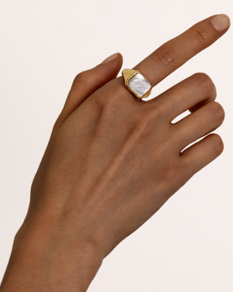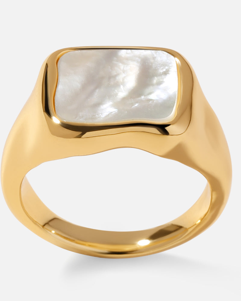 Wavy Square Signet Ring in Gold*18k Gold Plated, Mother of Pearl