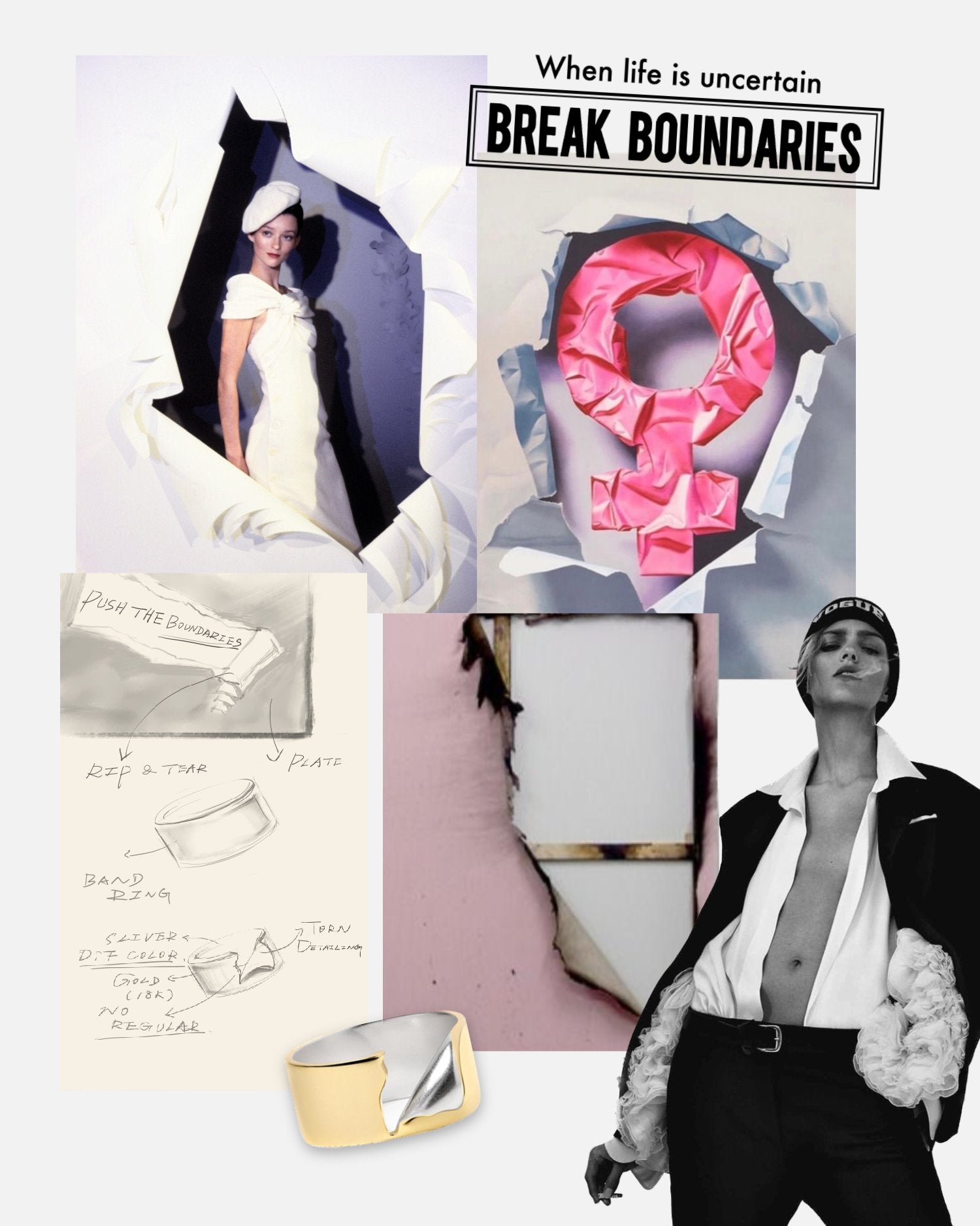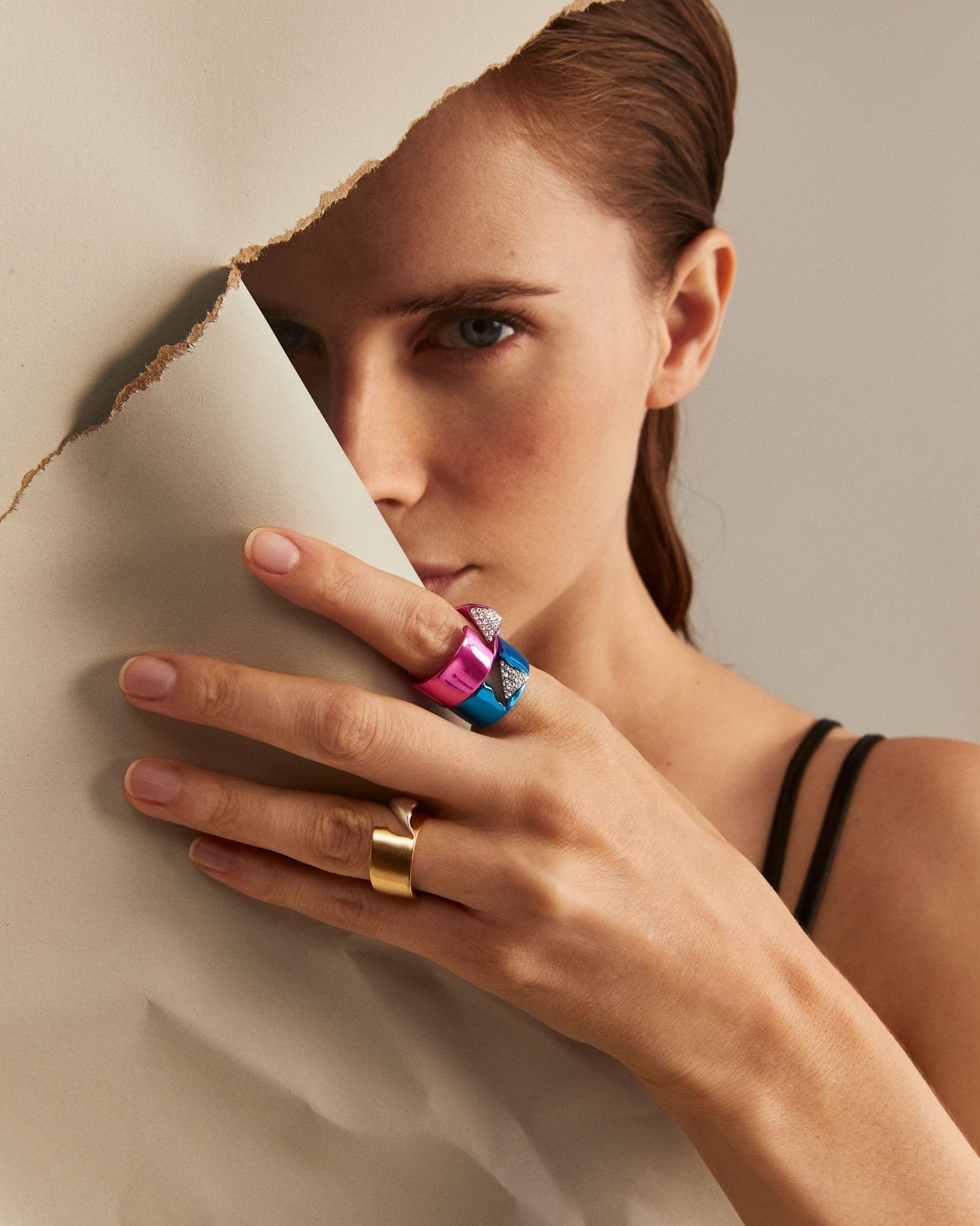 We were born with an idea in our minds, with a style made of opposites, brave and elegant, just like you. The very best combination of the collection is the spirit of pushing the boundaries with an intriguing design, and fine craftsmanship. The “rip and tear” style and contrasting colors of these rings, inspired by thoes who have courage to stand out, call to mind the possibilities and passion that lies in each one of us, to go further, to go beyond the norms and expectations.