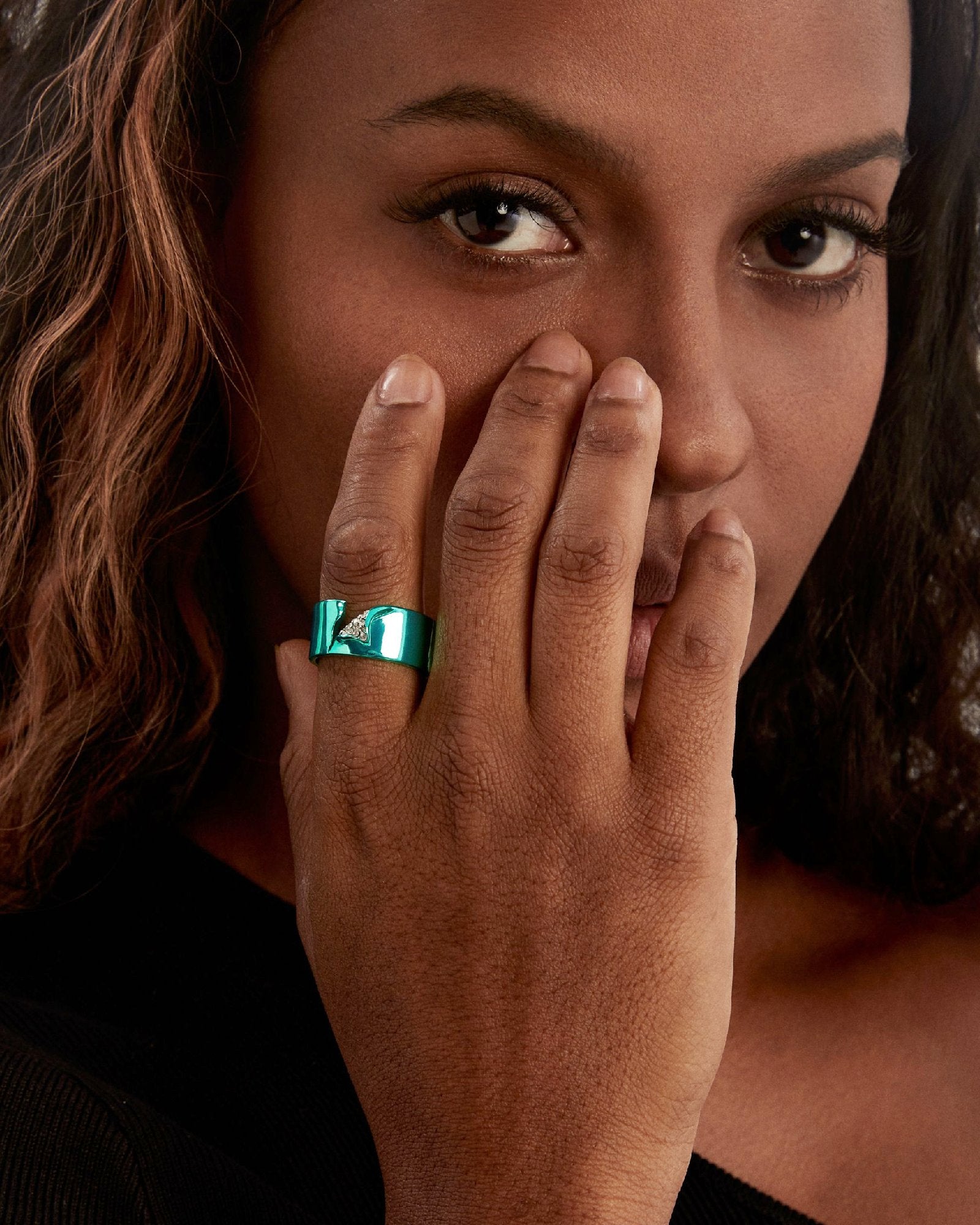 Torn Wide Band Ring in Aqua Aqua Plated on Silver, Crystal