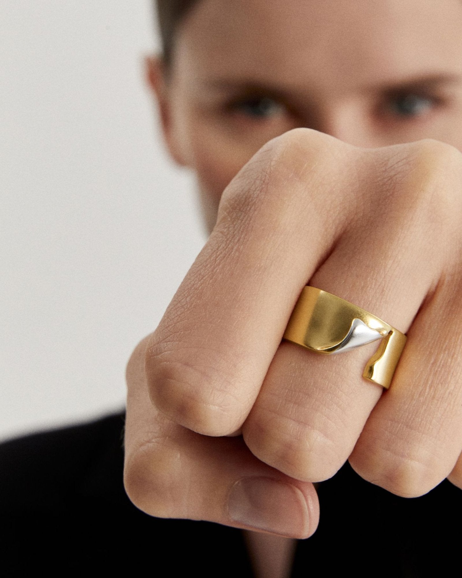 Torn Wide Band Ring in Two-tone Gold Vermeil and Sterling Silver