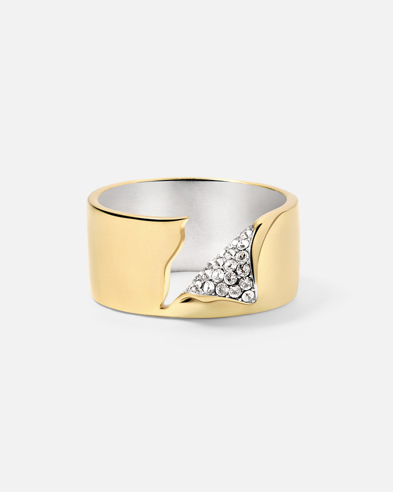 Torn Wide Band Ring in Two-tone Gold Vermeil and Sterling Silver, Crystal