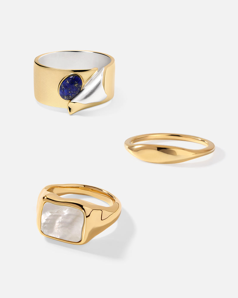 Torn Wide Band Ring Set of 3 in Two-tone Gold Vermeil and Sterling Silver, Lapis Lazuli