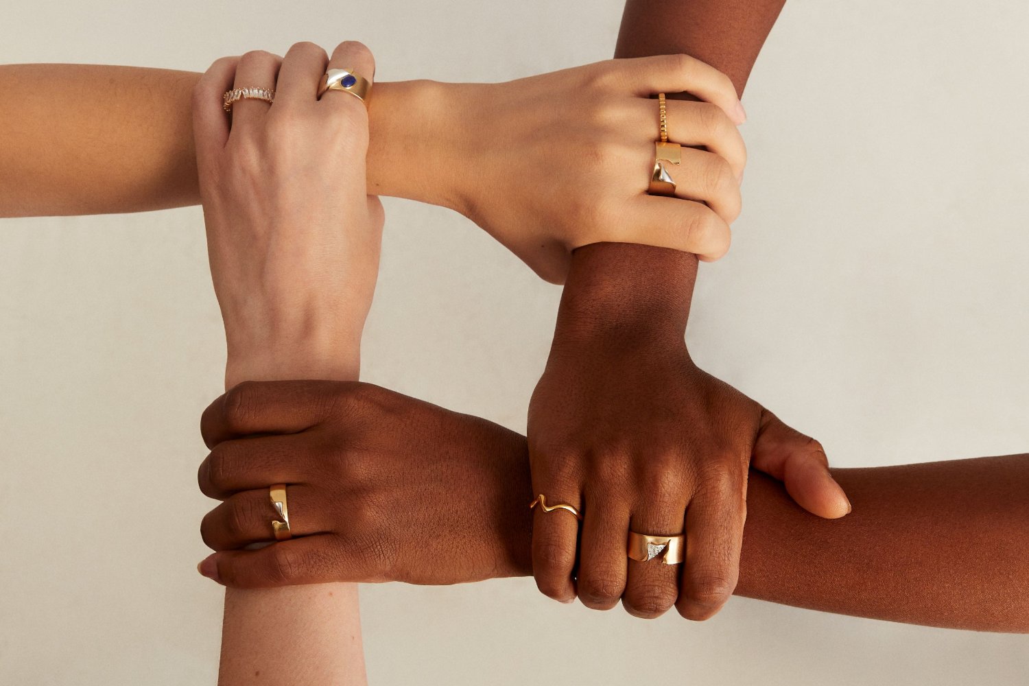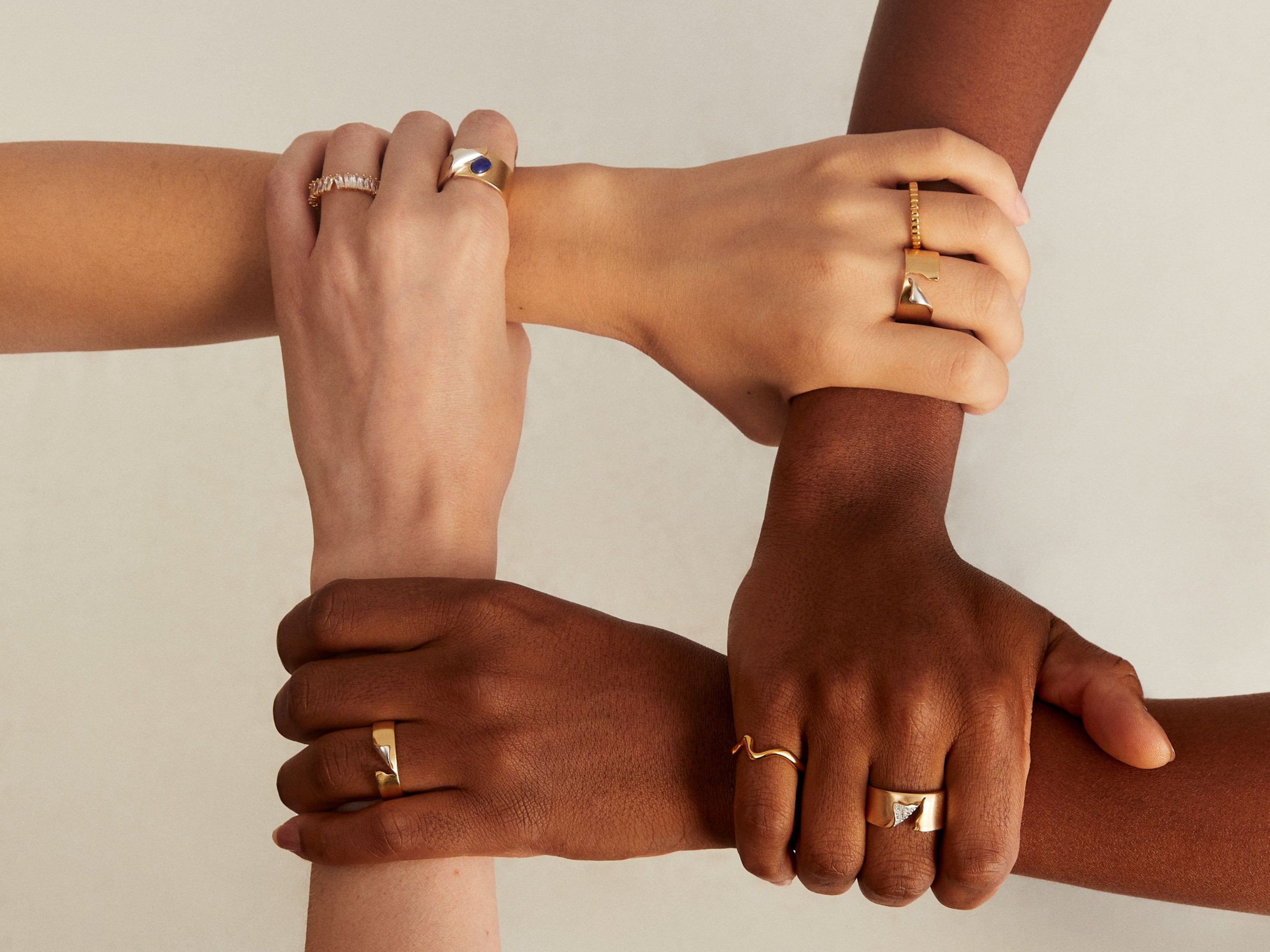 We're not perfect but we're committed to making better choices every day. Every act counts. Since September 2021, 100% of our silver collections are made from certified recycled sterling silver and since 2022, 92% of our brass collections are made from certified recycled brass. We use 100% recyclable packaging and our package is biodegradable. We produce limited-edition drops instead of overproducing- we'll only create more if they are needed.