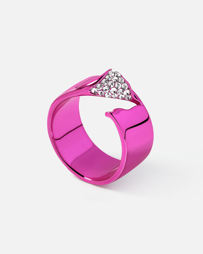 Torn Wide Band Ring in Fuchsia Pink Fuchsia Pink Plated on Silver, Crystal