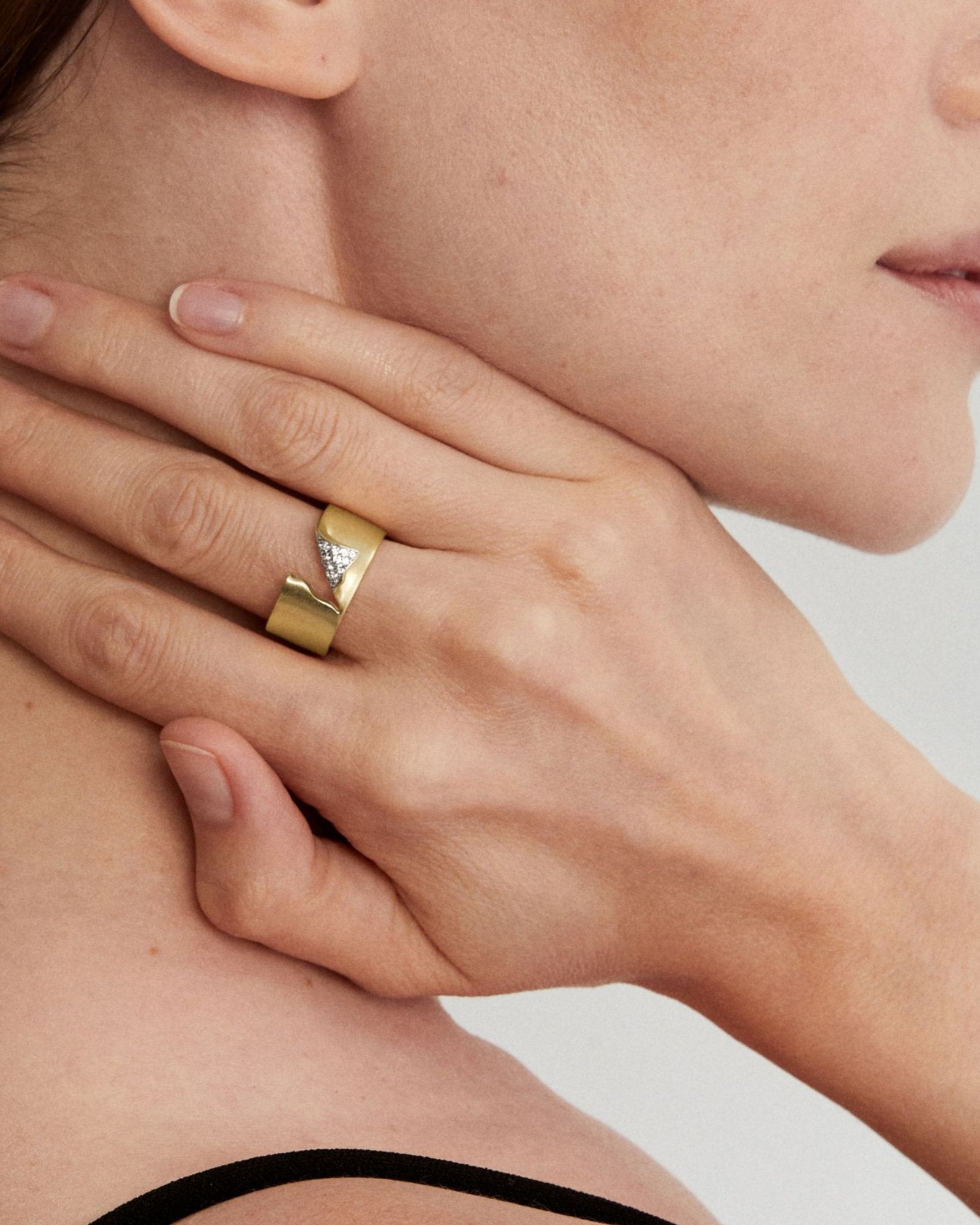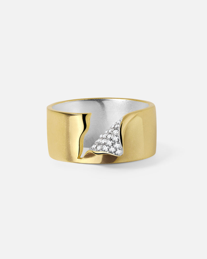 Torn Wide Band Ring in Two-tone Gold Vermeil and Sterling Silver, Crystal