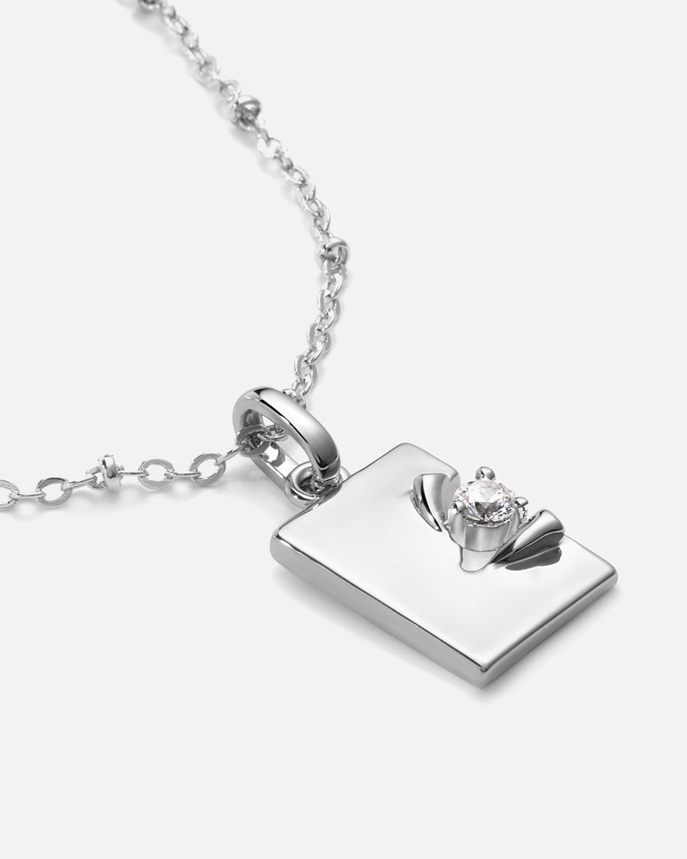 Torn Rectangular Tag Necklace in Silver*Rhodium Plated, Crystal