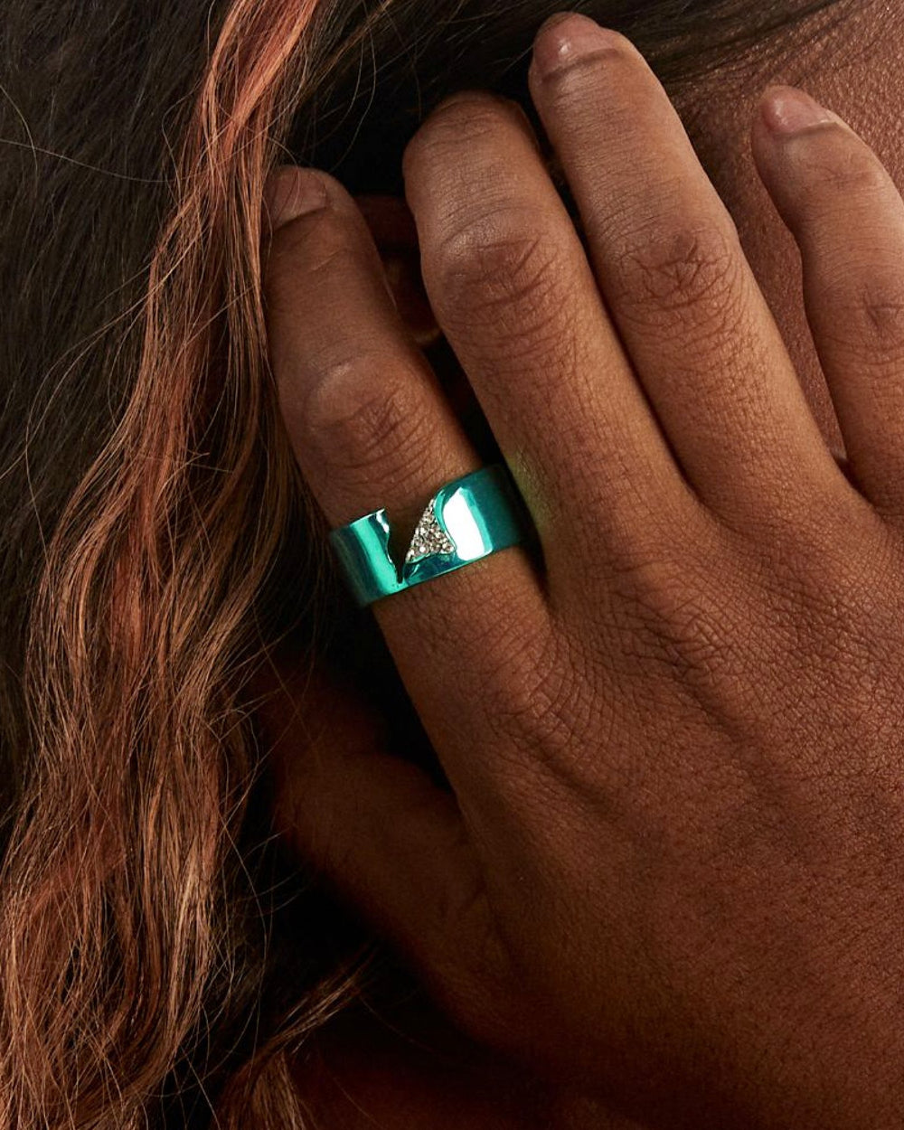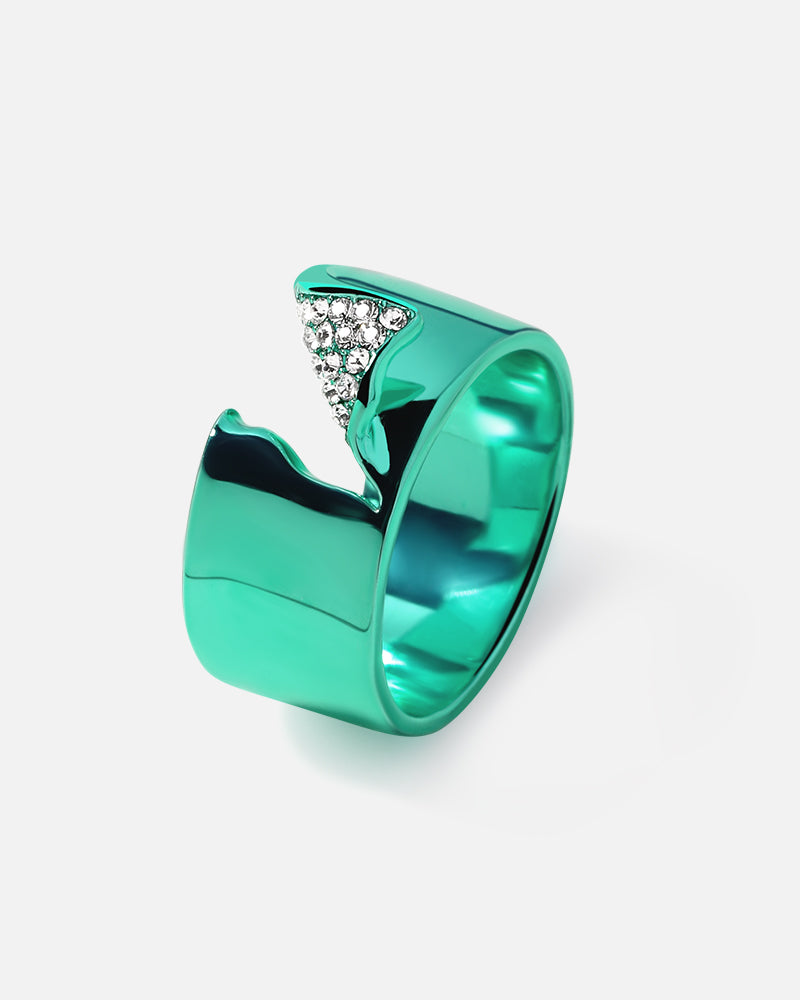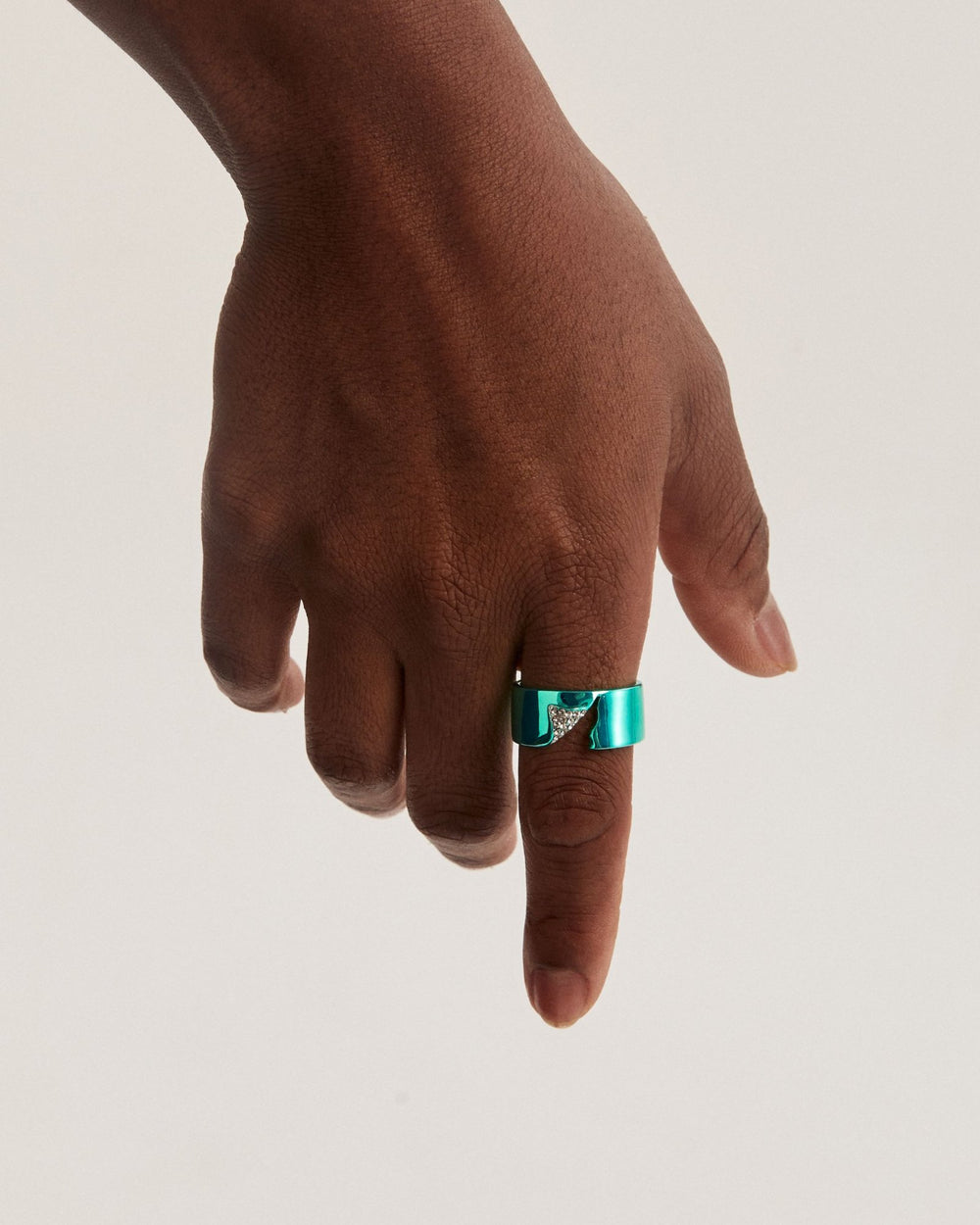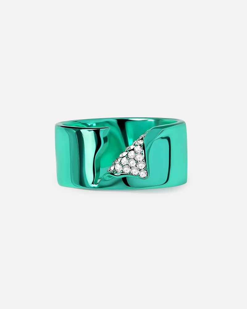 Torn Wide Band Ring in Aqua*Aqua Plated on Silver, Crystal